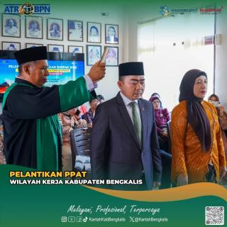 Pekanbaru,Radaroke.com – Dalam rangka memperingati Hari Undang-Undang Pokok Agraria (UUPA)Kepala Kantor Pertanahan Bengkalis Lantik Dua PPAT Baru